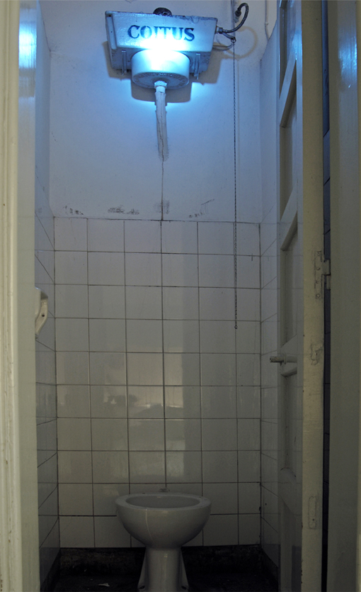 The installation is situated in the w.c. of the old Arsakeio School of the city of Patra (Greece). The Arsakeio was a leading educational institution of the bourgeois class of modern Greece with highly conservative ideas and emphasis on the religious life of the young students. Through the pipe lines of the w.c. one can listen to young students’ poems during a national fest. We used recorded material from old school ceremonies situated in another Arsakeio School. A young girl wishes to achieve glorious death during the war and praises the Lord.