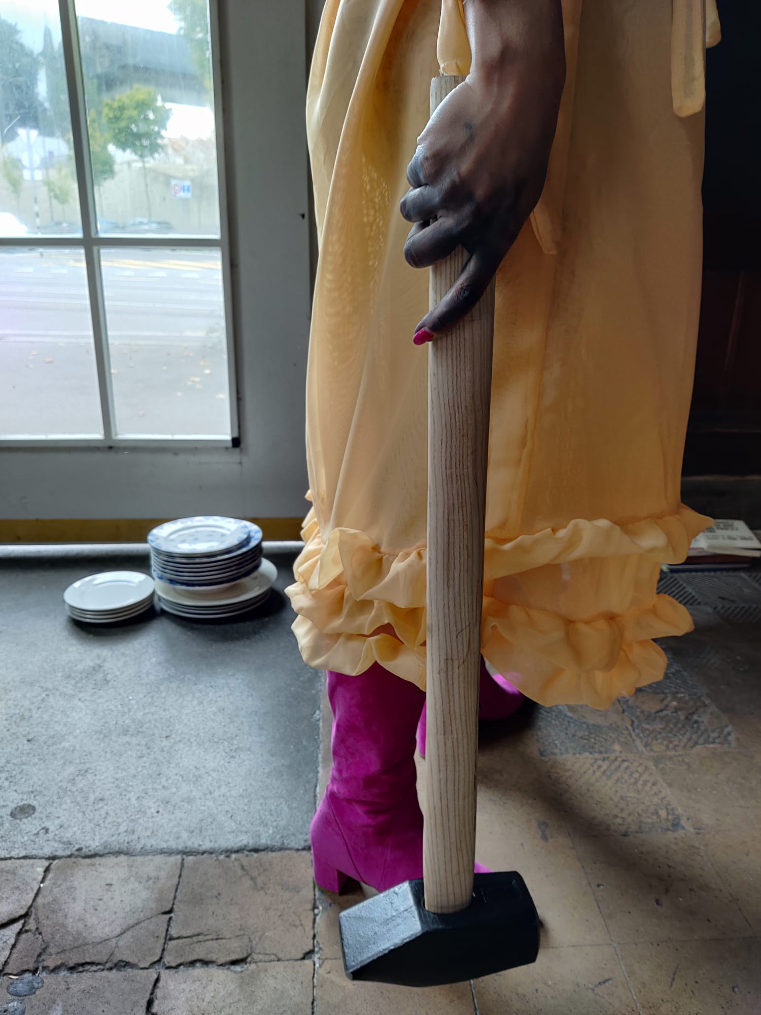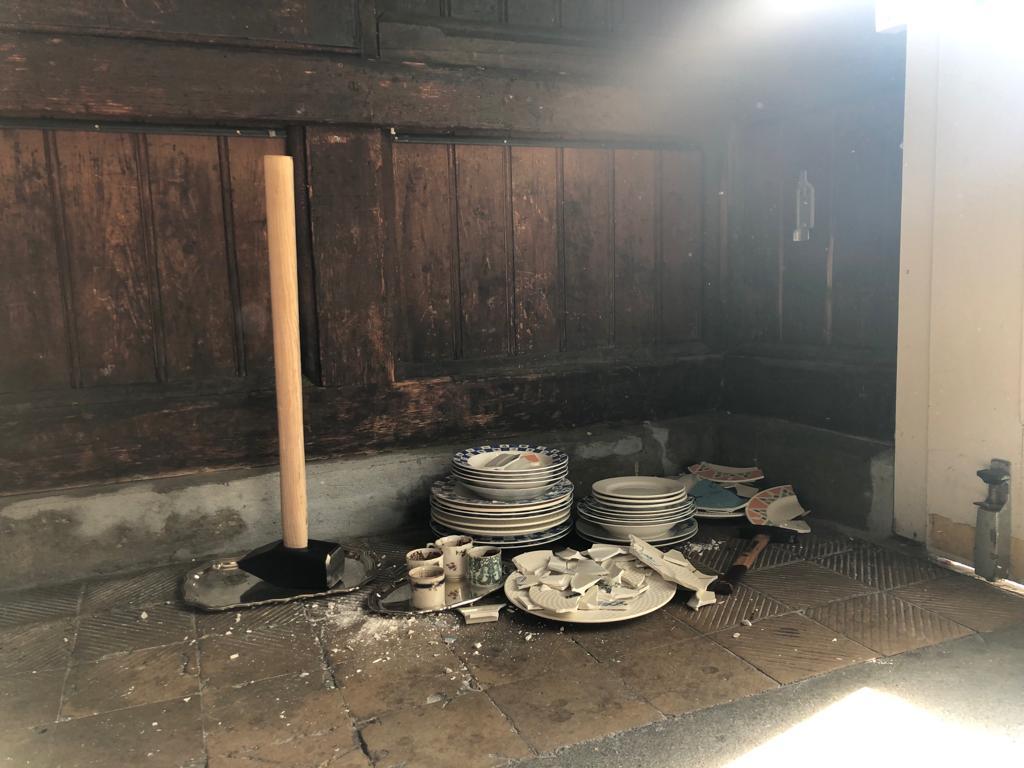 The visitors are asked to make their own greek coffee for the women to read their futur in coffee grains. They are asked to “prepare” themselves by performing rituals such as crawling and smashing dishes. An audio of Vassilo’s story who kills babies and children, a figure stemming both real stories of remote greek villages and greek literature (Alexandros Papadiamadis’ Fonissa).