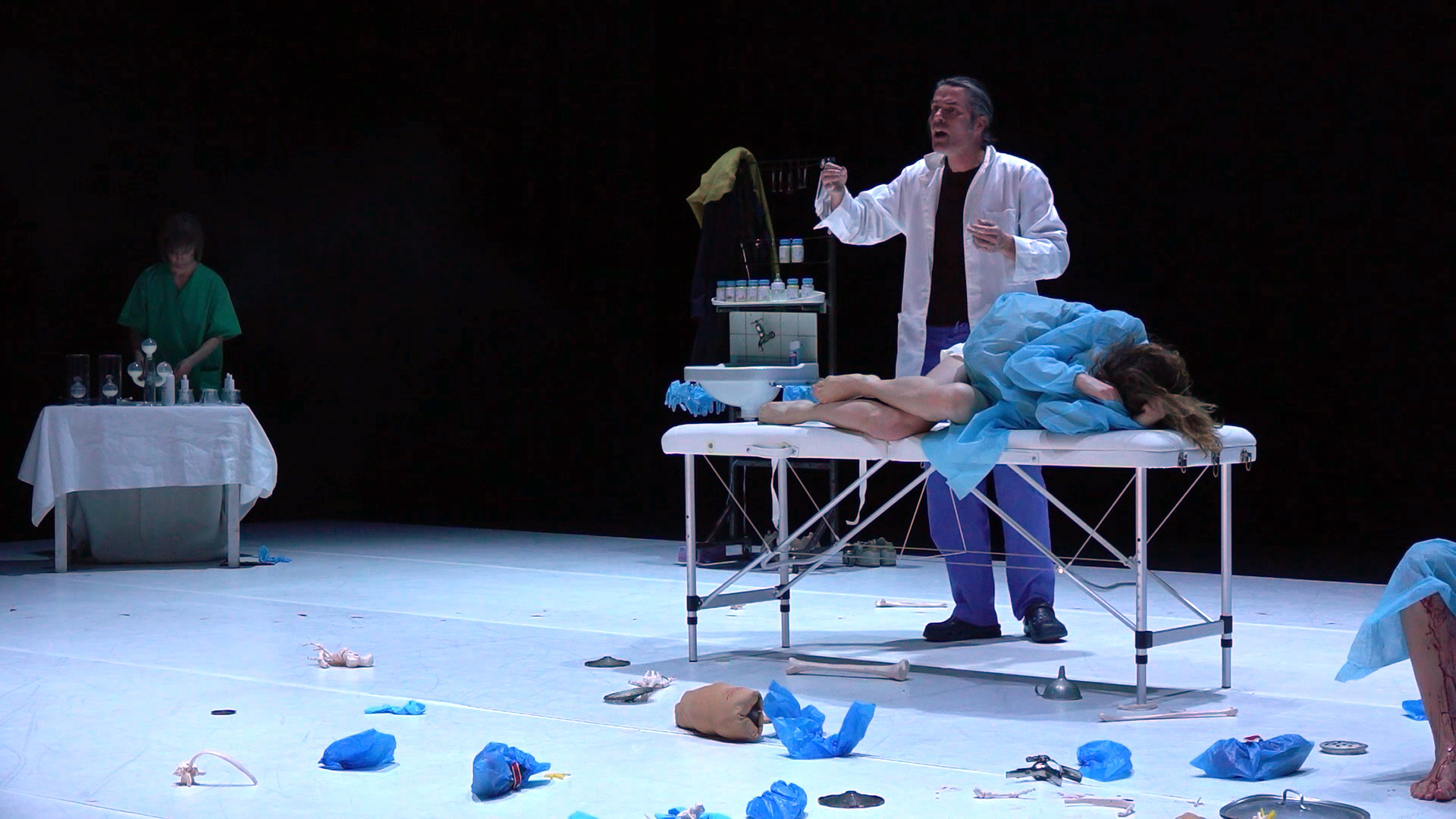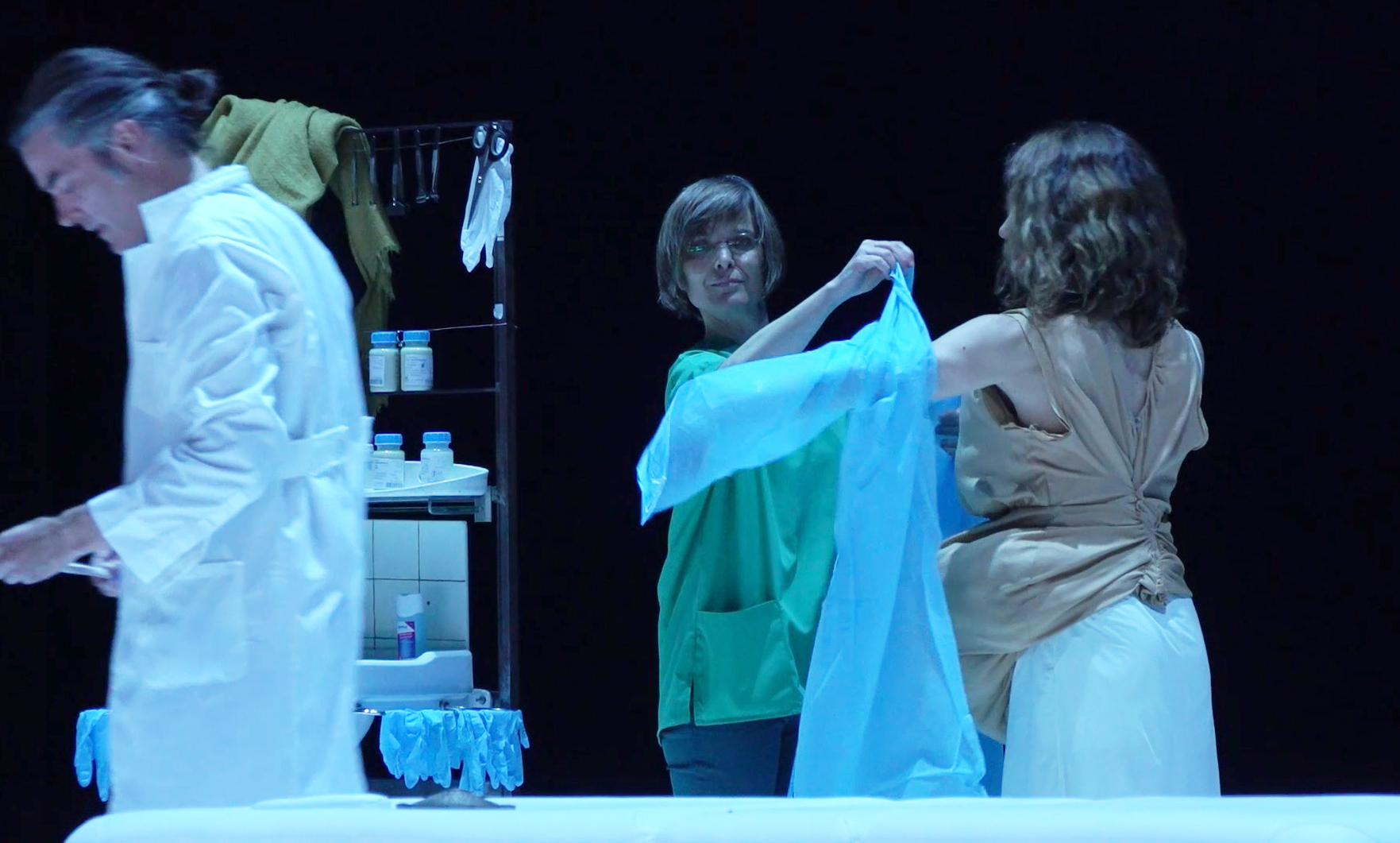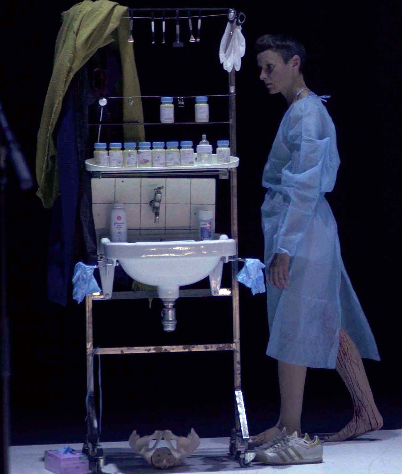 “It’s for your own good” the gynaecologist says to the pregnant lady while the stage gradually gets red from the blood of the period of another woman waking around.
