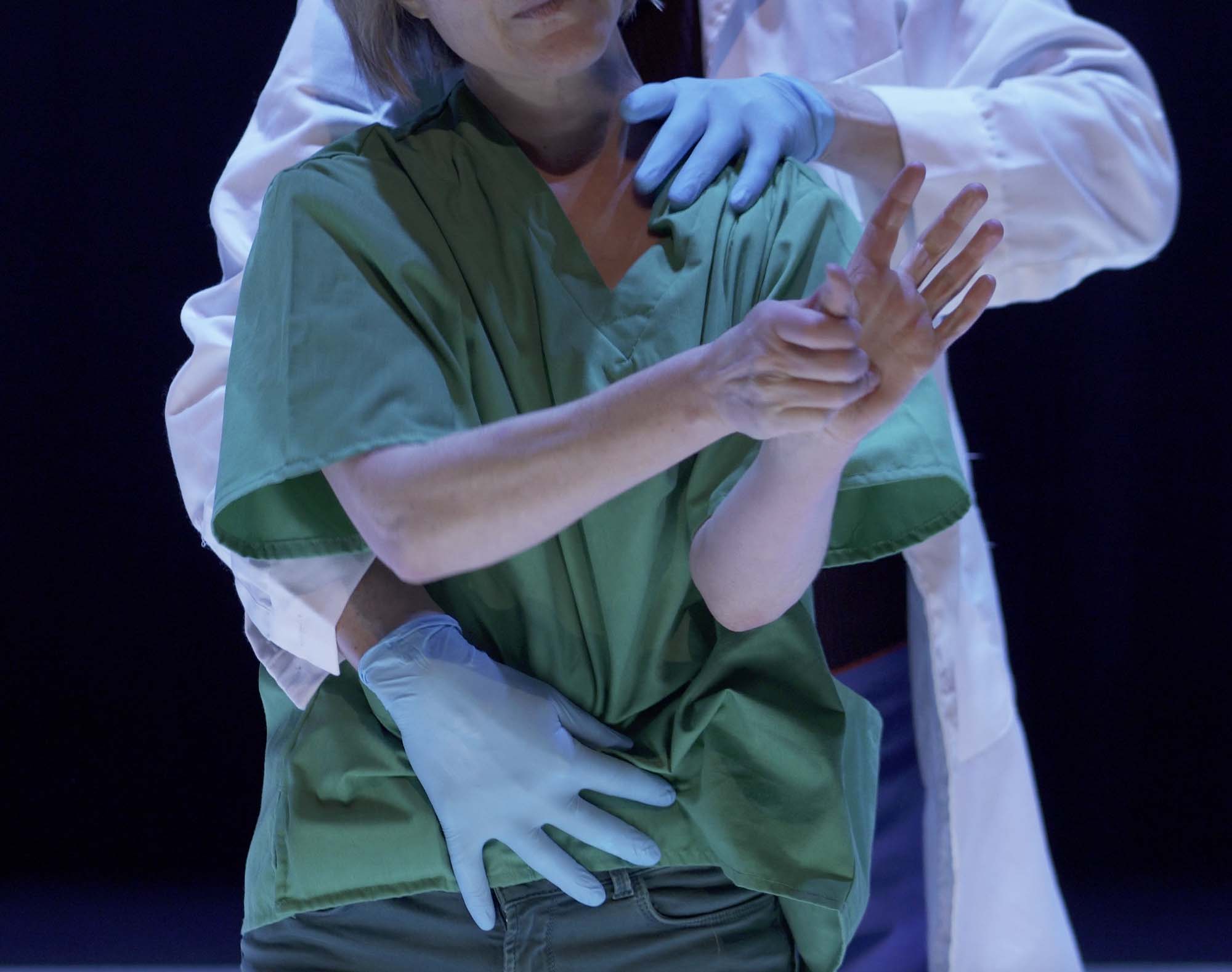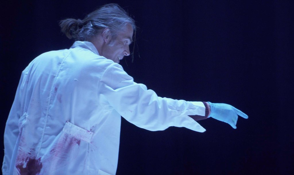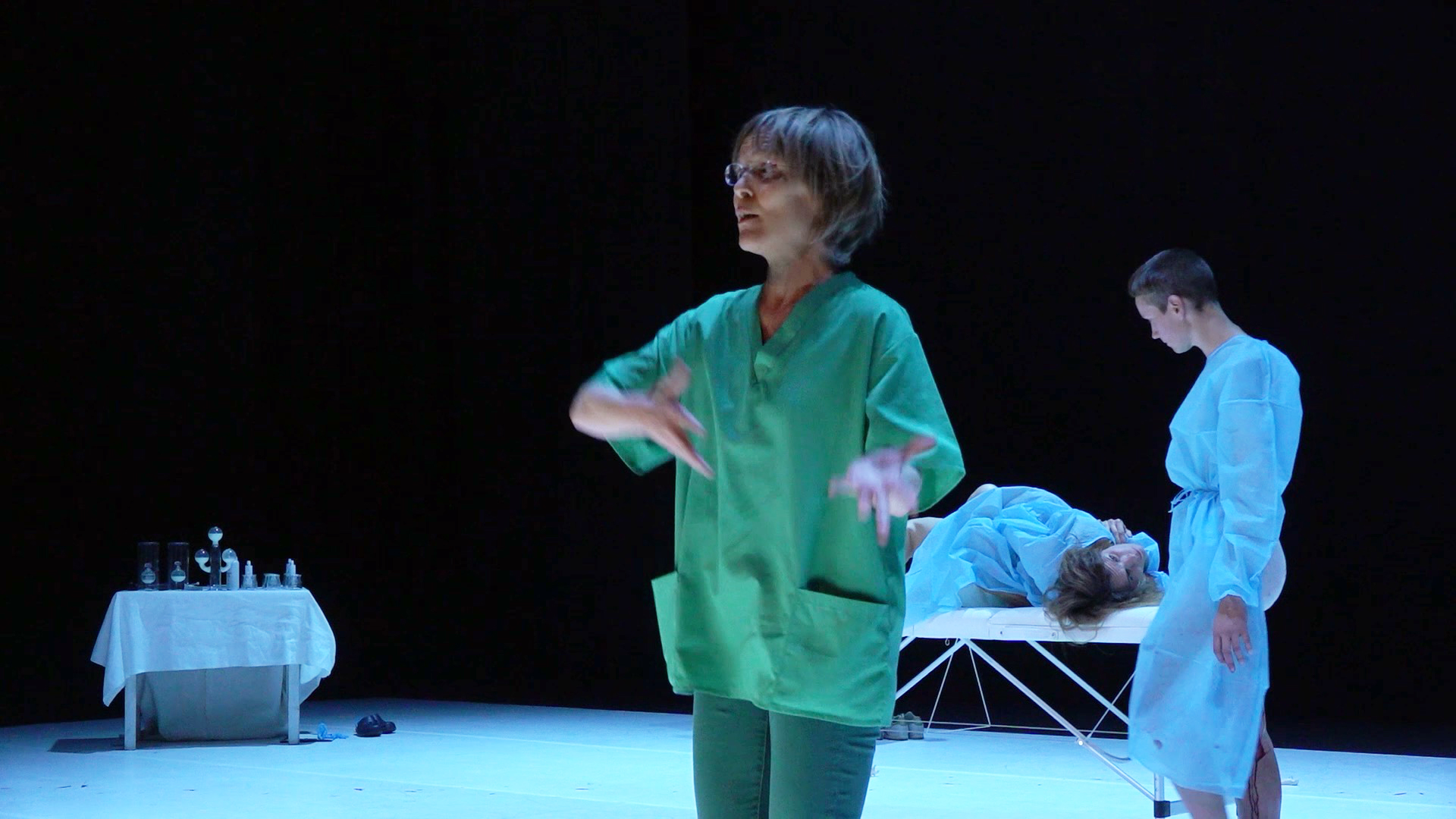 “It’s for your own good” the gynaecologist says to the pregnant lady while the stage gradually gets red from the blood of the period of another woman waking around.