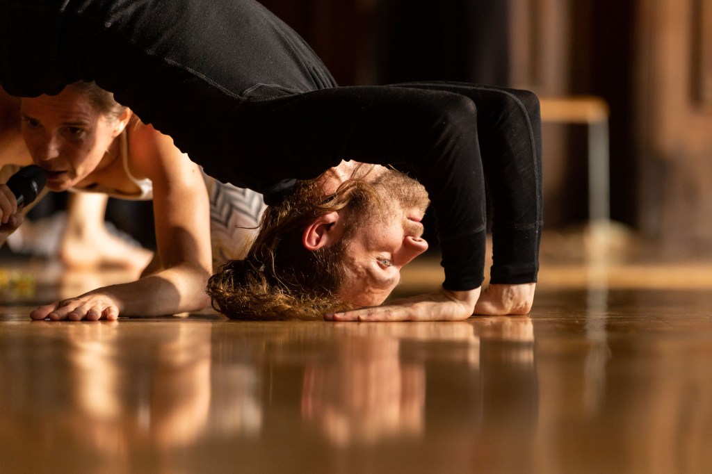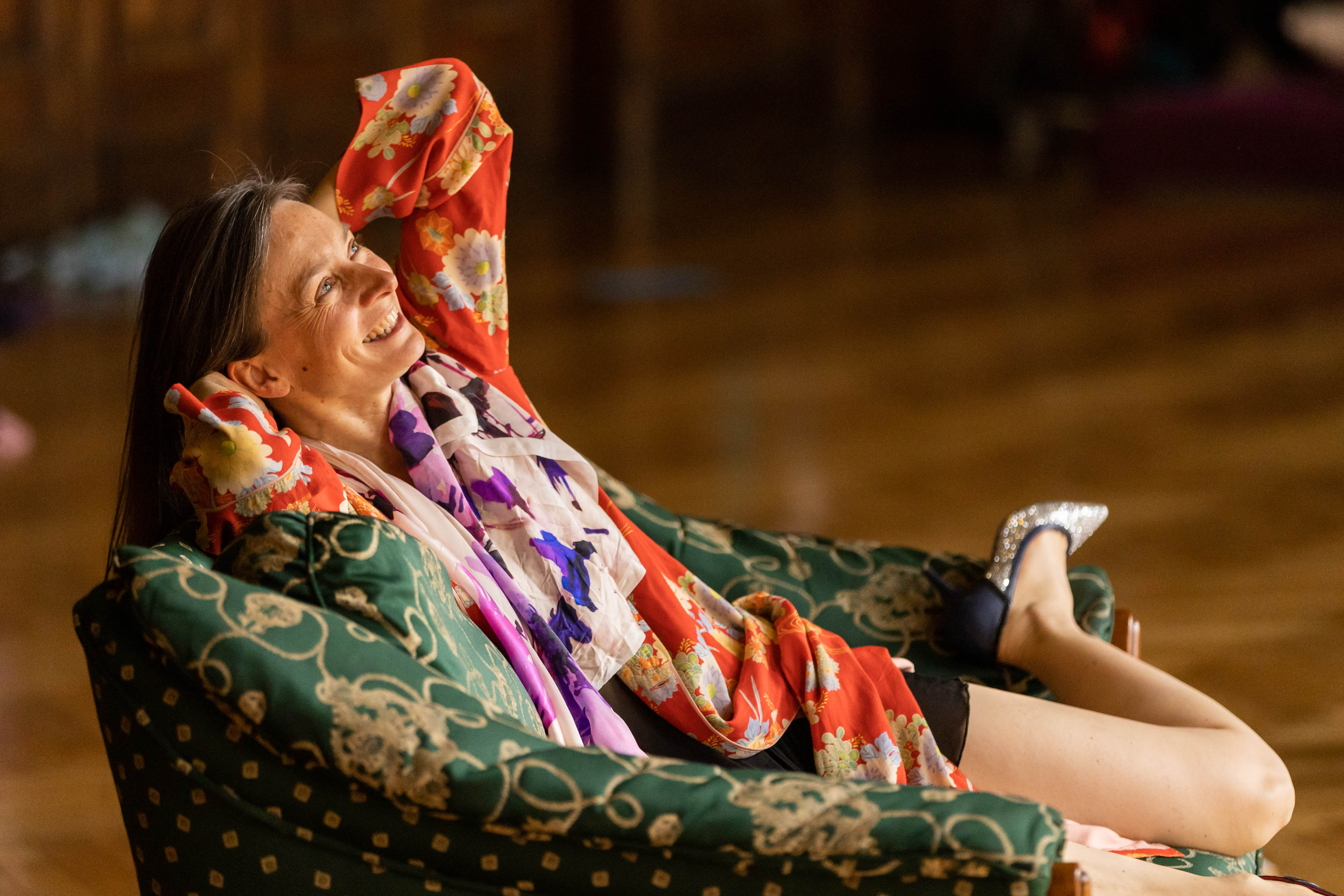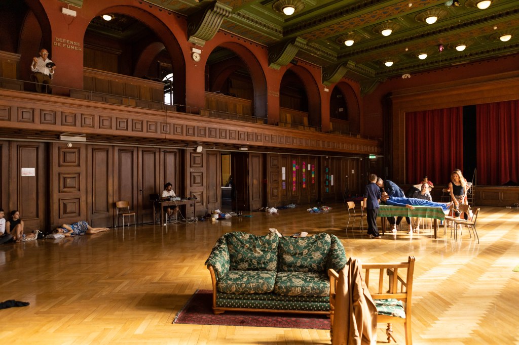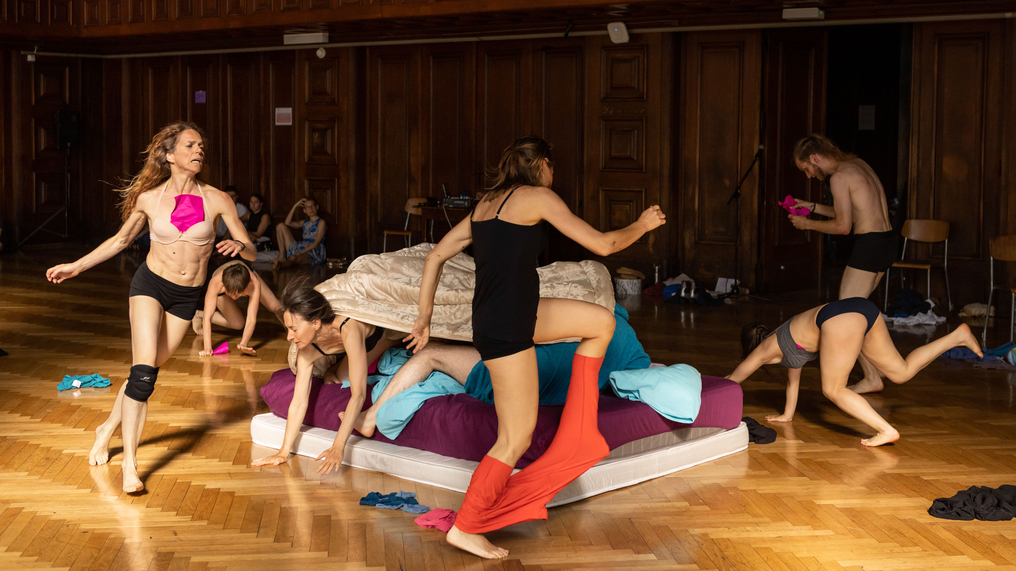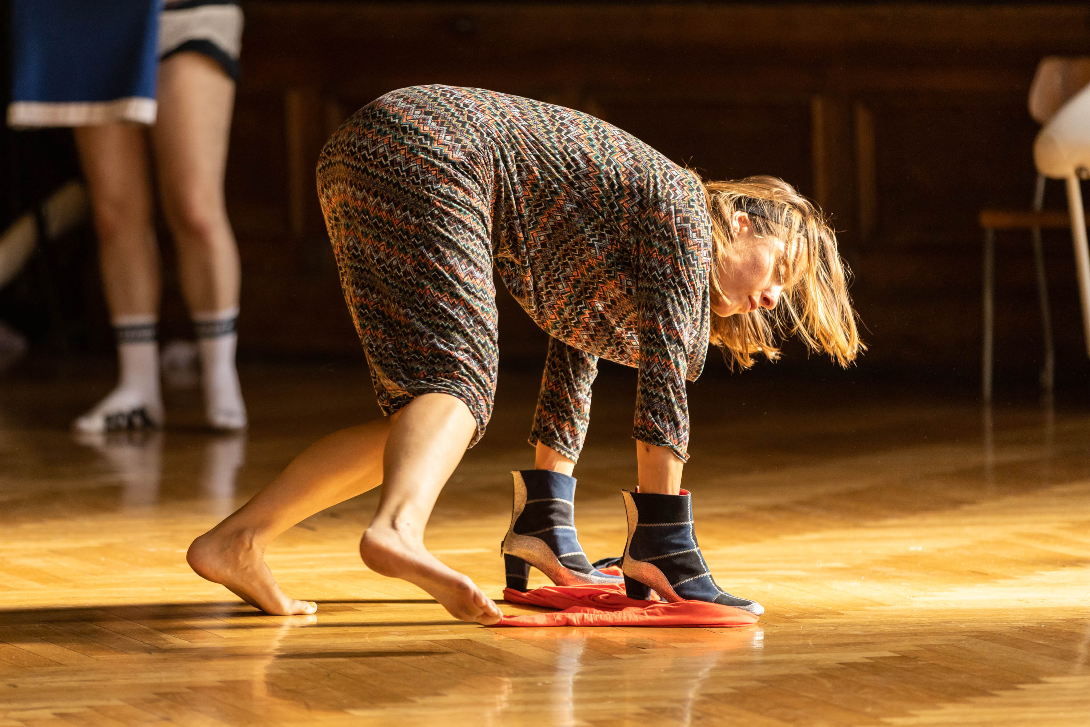 The protagonist on stage is Marie and she is plural. It is played by different performers, men and women. While the presenter announces the coming of each Mary as if it were a symptom of a contemporary discourse, the new Mary unfolds. Sometimes Marie is a control freak, sometimes she’s a melancholic or simply not available, just absent. While Marie appears divine, we also see her on her therapist’s couch: her diagnosis will soon be visible, in theory and practice. Mary also embodies the figure of the mother, but it is to better ask us what relational bodies the maternal is made of today. Mary here, Mary there. The performers move back and forth, in and out of their roles to explore the playful and dark sides of Marie. Its different figures, alternately victims and aggressors, are freely improvised and explored by playing on the threads of the news. In interaction with the wandering audience, our bodies and voices perform movements, fabricate objects and shape narratives that narrate, abuse and transform the multiple facets of representations of Mary.