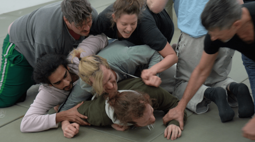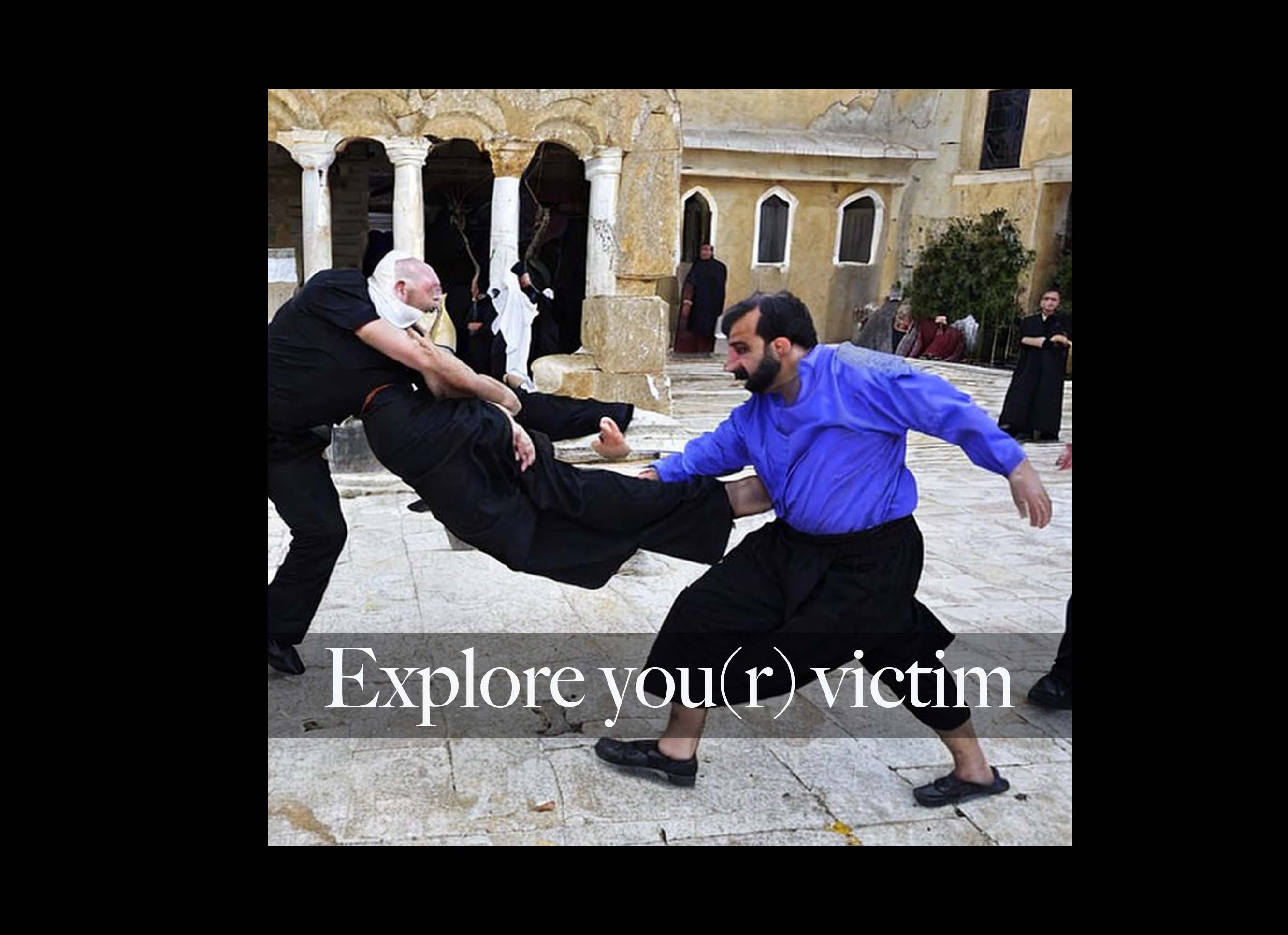 “Democratic Exercises – Body at Risk” is a series of artistic performances and installations that stage combat exercises between “dominant” and “dominated”. A game on verbal and physical violence where the frontiers between the victims and the aggressors are blur.