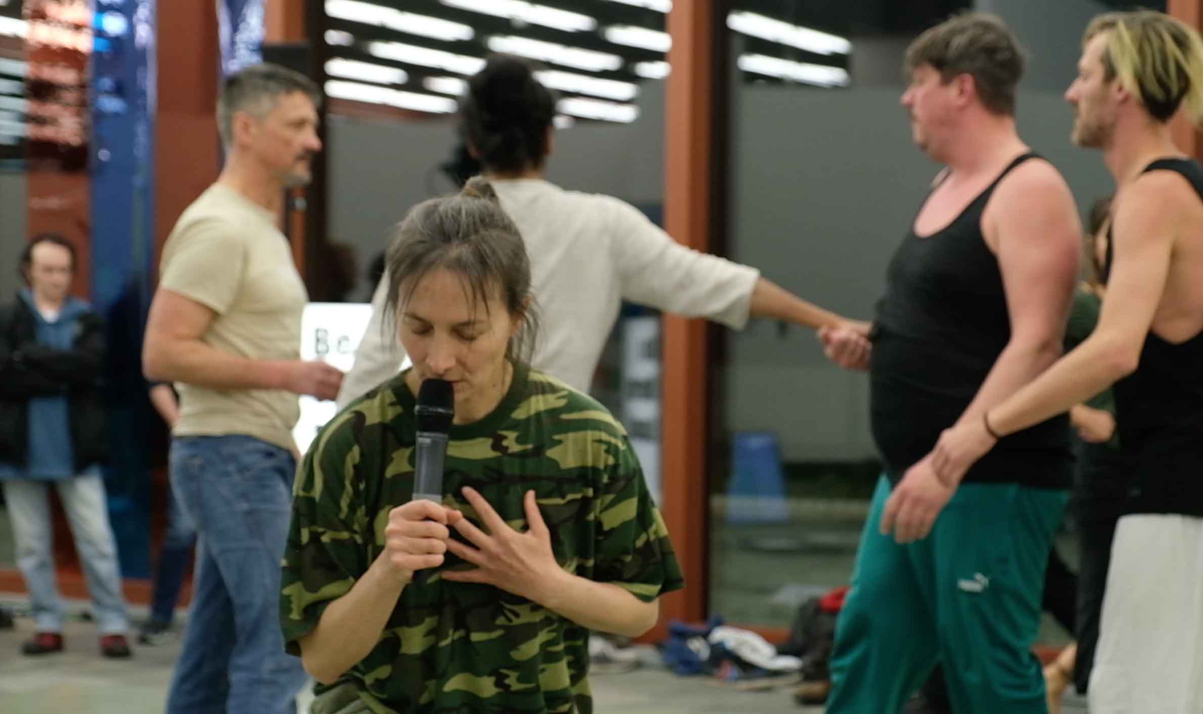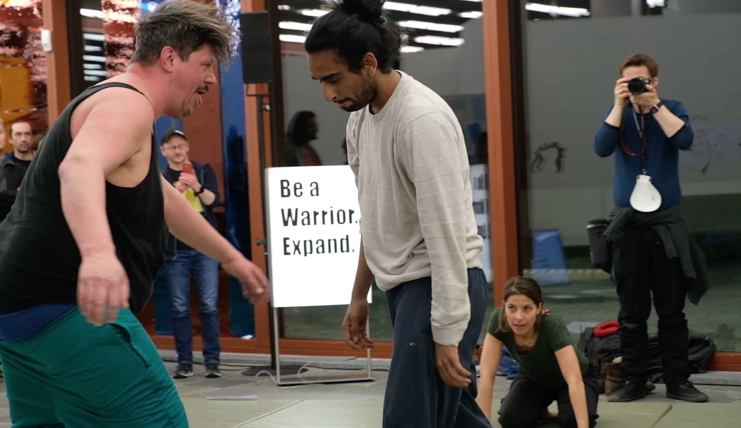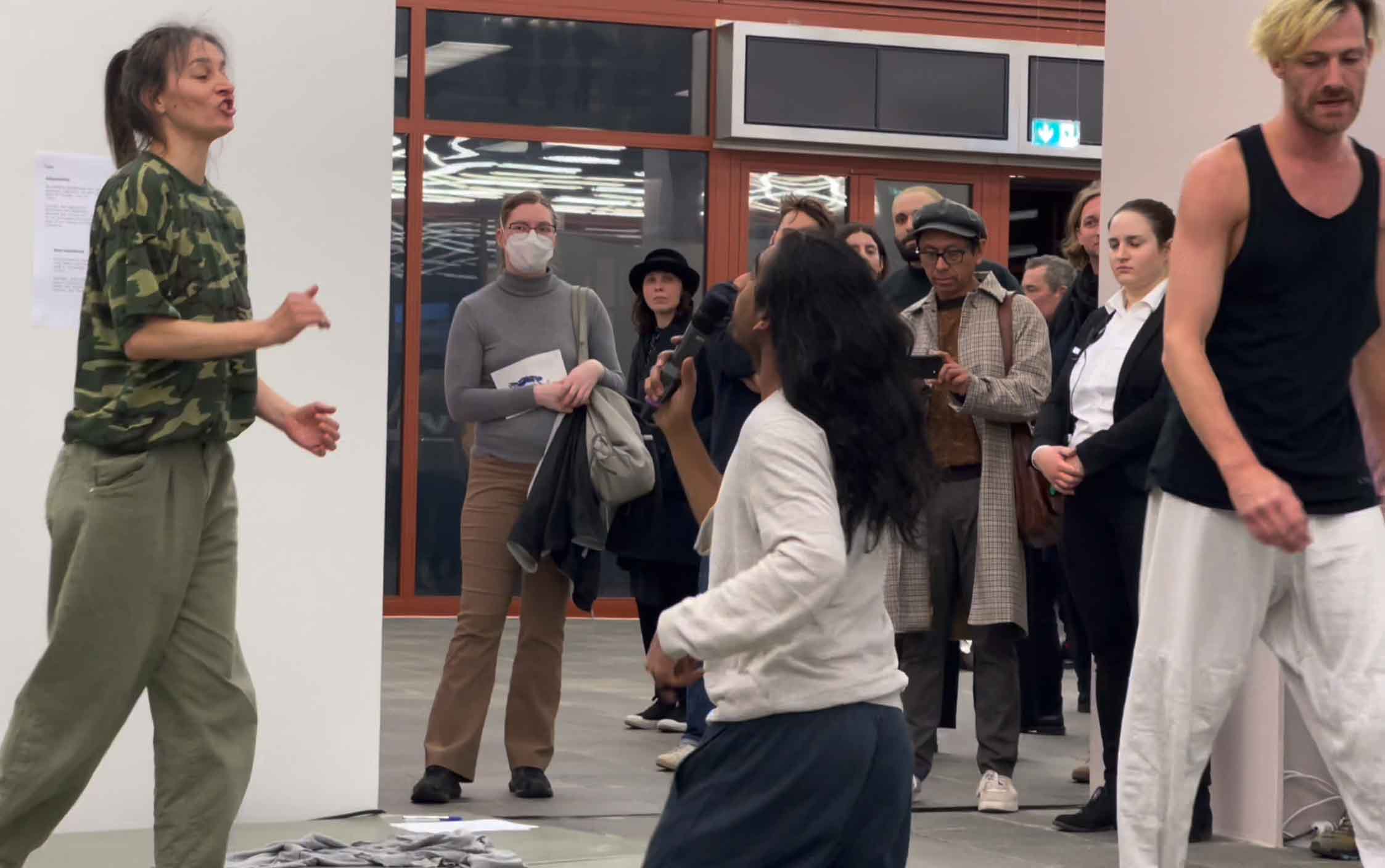 Collective apologies, a Care Giver asking “Do you love me?”, the need for a good Psy, scenarios of climate apocalypse and accusations of “still eating meat?!” are some of the issues around the fighting exercises. “Toxic masculinity” and questions as “Are you a man or a woman?” return to give space for more “insults” and “verbal aggression”. Who is the victim? How we produce victims and aggressors ?